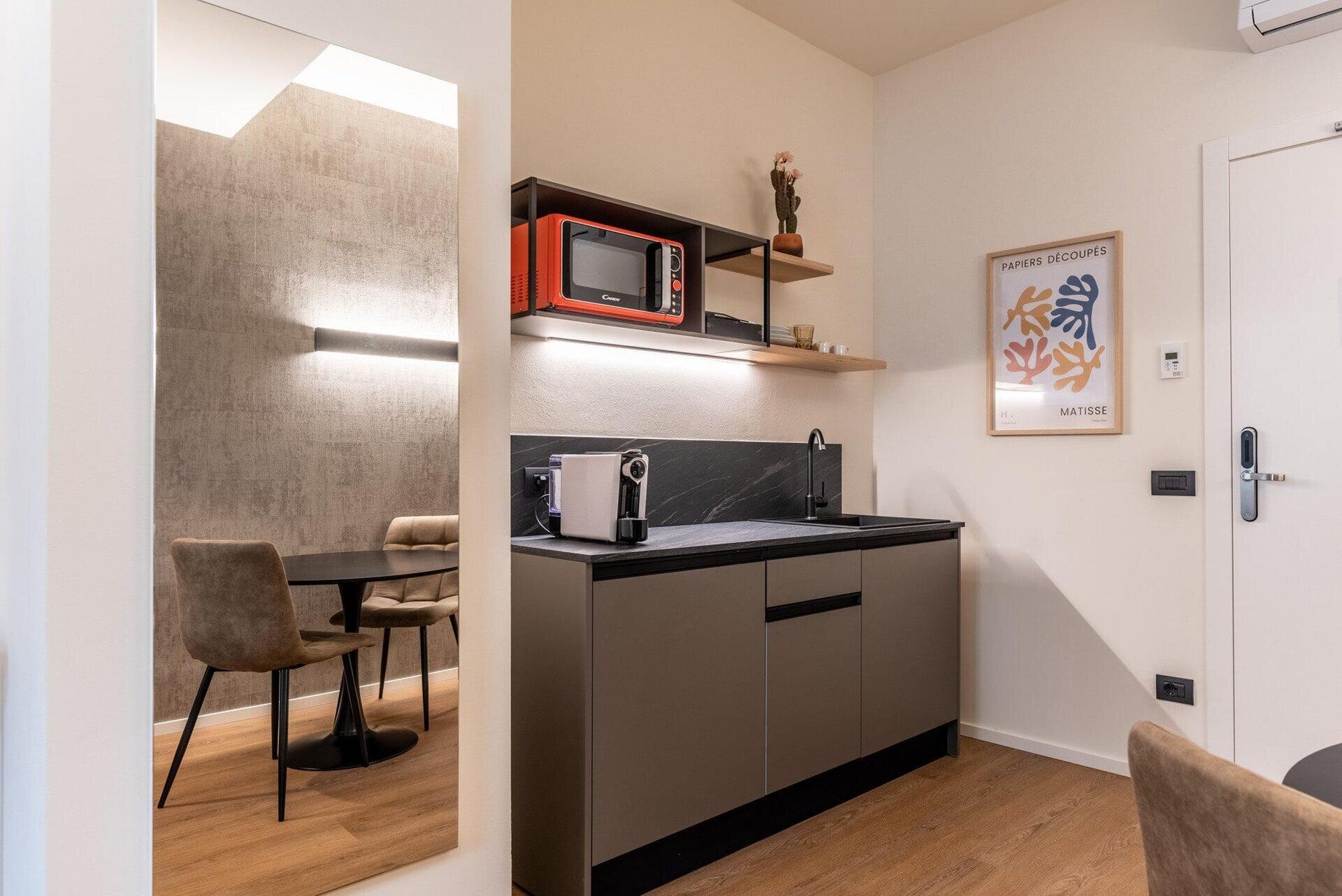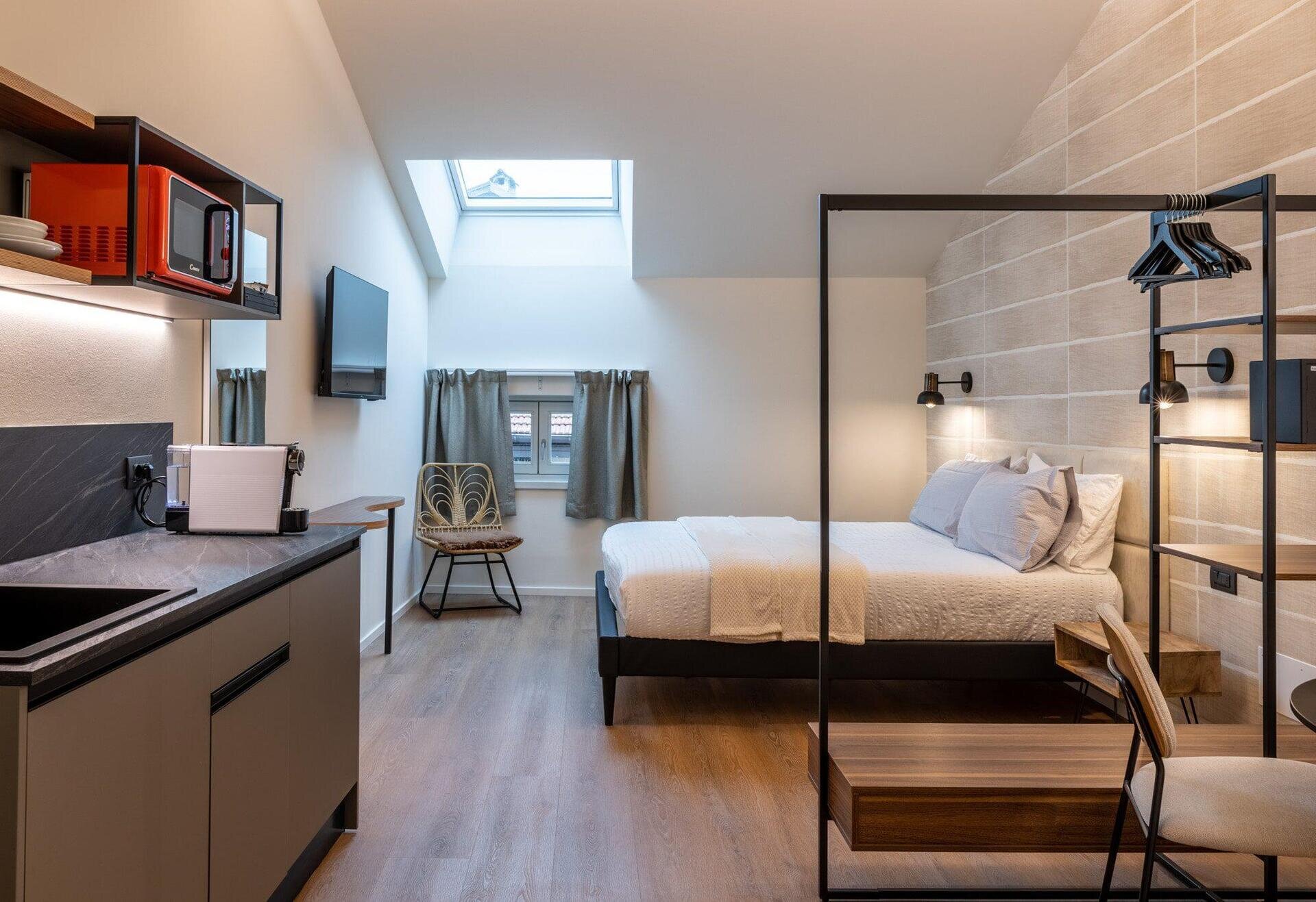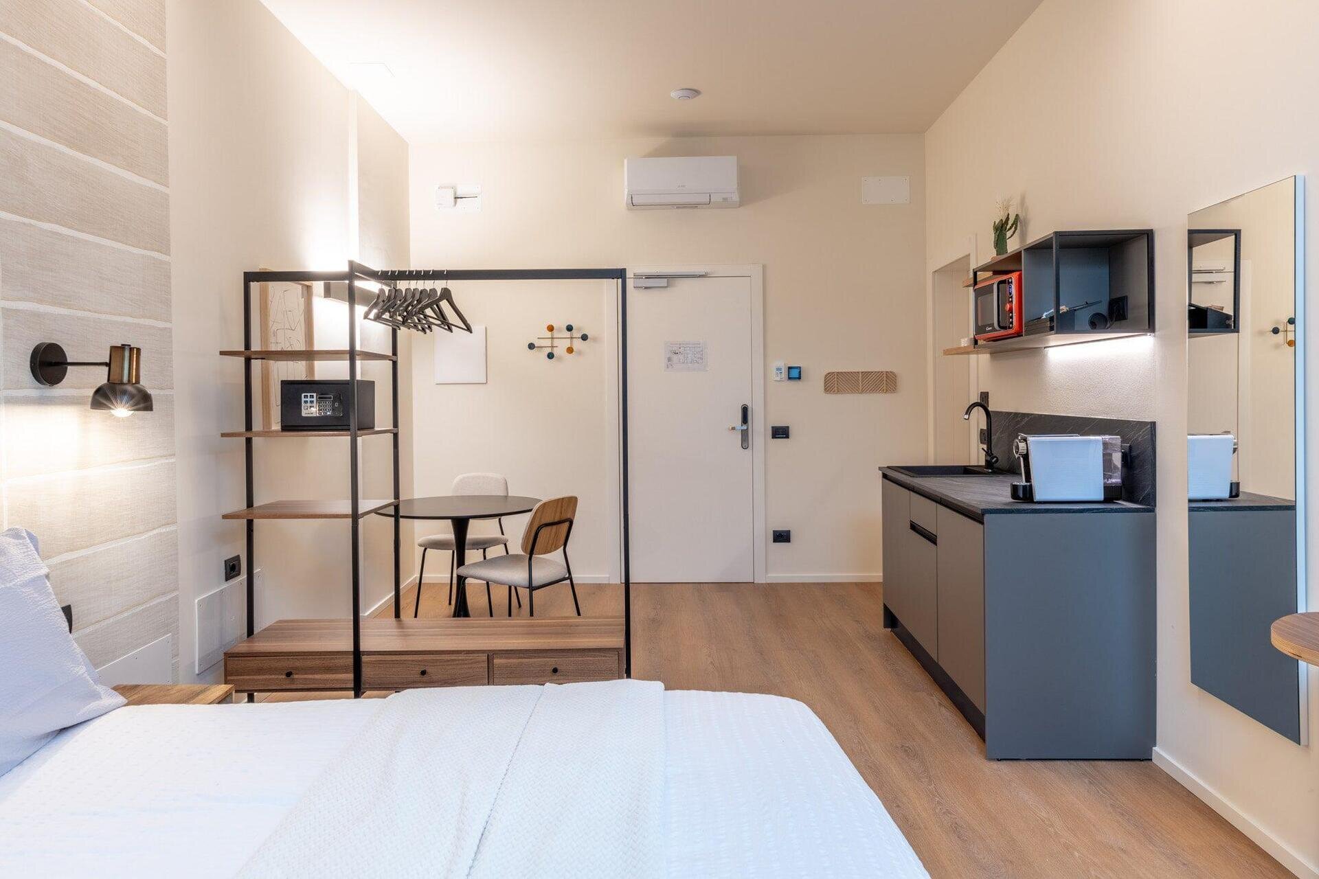 The Place ist auf Kurzzeitaufenthalte für diejenigen spezialisiert, die ein unvergessliches Erlebnis im Herzen von Trient genießen möchten, ideal auch für diejenigen, die aus beruflichen Gründen unterwegs sind. The Place ist strategisch günstig im historischen Zentrum von Trient gelegen, mit Blick auf zwei der wichtigsten Straßen der Stadt, Oriola und Mantova, nur wenige Schritte von der Piazza del Duomo entfernt. Diese zentrale Lage ermöglicht es unseren Gästen, in das wahre Wesen der Stadt einzutauchen, die Schönheiten der Stadt zu bewundern und gleichzeitig eine angenehme Atmosphäre zu genießen. Es ist nicht nur die Lage, die The Place einzigartig macht, sondern auch seine faszinierende Geschichte. Das kürzlich renovierte Gebäude befindet sich im renommierten Palazzo Moncher, dem ehemaligen Wohnsitz von Guido Moncher, dem Luftfahrtpionier und Erfinder des Hubschraubers. Wir glauben fest an die Automatisierung der Dienstleistungen; unsere Einrichtung ist so konzipiert, dass sie den Gästen ein Maximum an Privatsphäre, Sicherheit, Autonomie und flexiblem Zugang garantiert. Wir haben uns für die modernste Technologie des Online-Self-Check-in und der intelligenten Türöffnung für einen Eingang entschieden, der ausschließlich den Gästen von The Place vorbehalten ist. Das eingesetzte Online-Self-Check-in-System macht den Ankunftsprozess schnell, einfach und unkompliziert: Es genügt, die Online-Anmeldung vor der Ankunft auszufüllen.