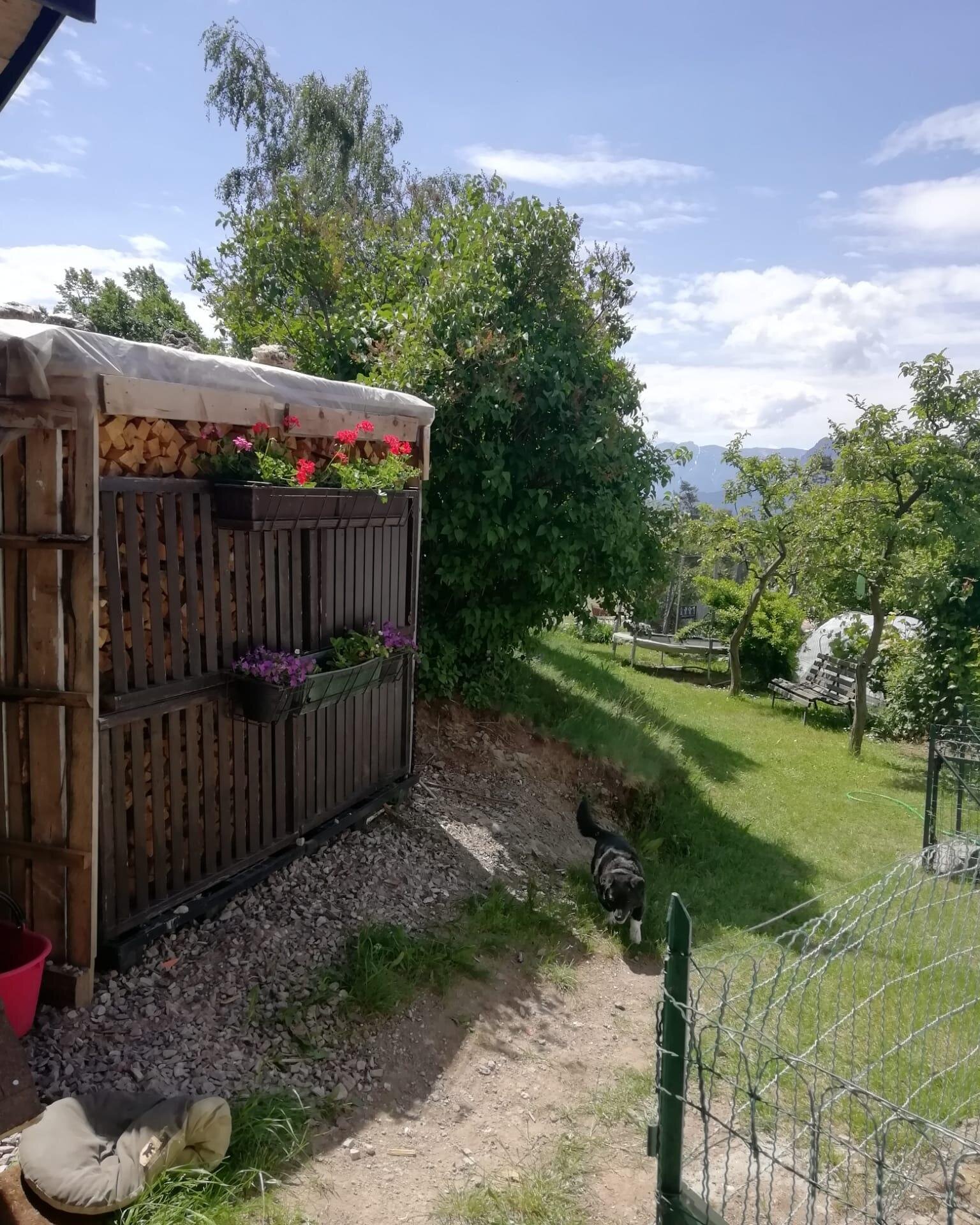 Morgens sieht man vom Küchenfenster aus die Sonne von Costalta aufgehen, abends kann man sie direkt vom Balkon des Wohnzimmers begrüßen, wenn sie hinter dem Bondone untergeht. An das Haus grenzt ein großer Garten, den die Gäste mit uns und unserer kleinen Milly (kleiner Hund) teilen.