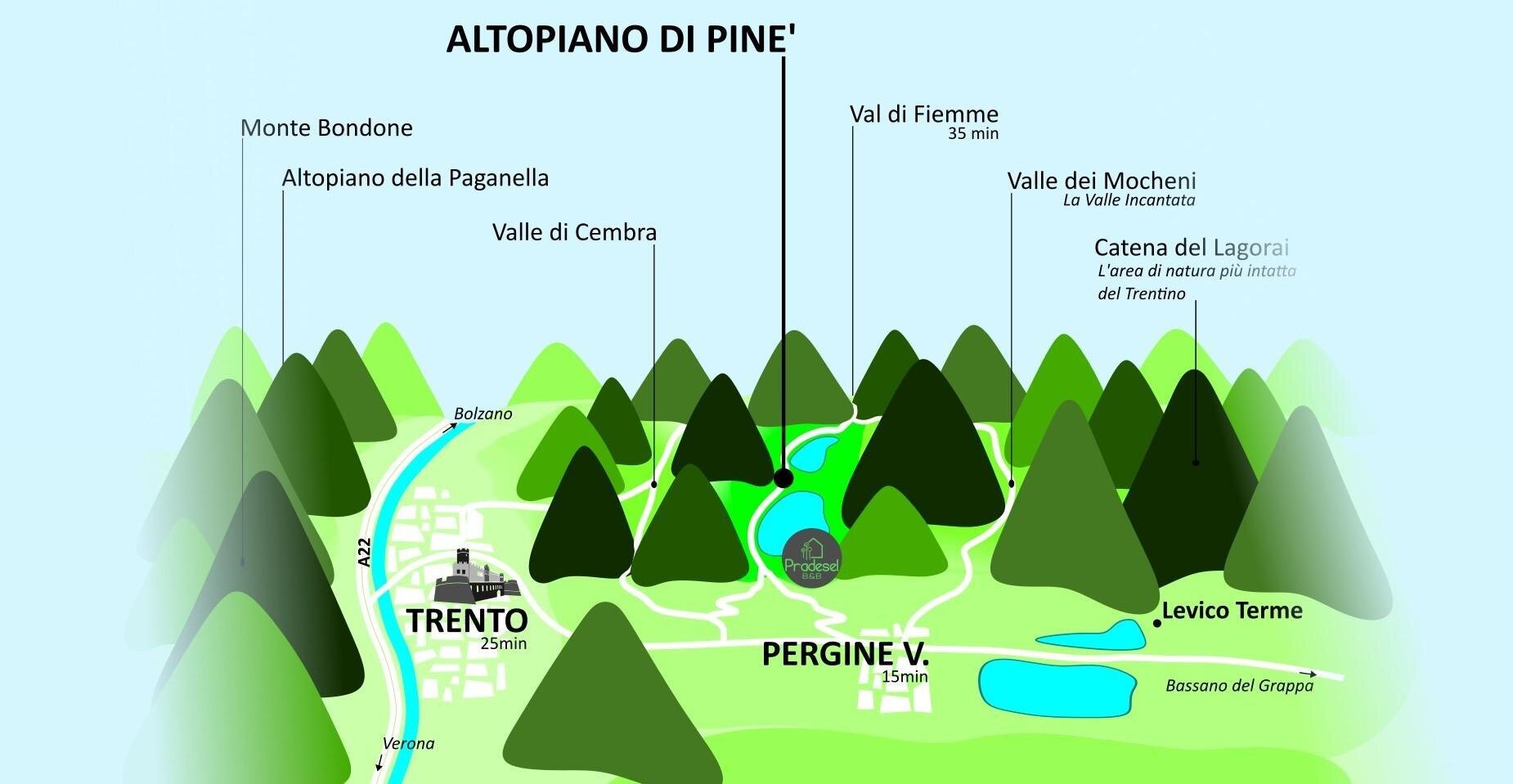 Vierbeinige Freunde sind herzlich willkommen und finden Schüsseln und Hygienebeutel zur Verfügung. Wir geben kostenlos die Trentino Guest Card aus, die kostenlosen öffentlichen Nahverkehr und Zugang zu Museen und Schlössern in der gesamten Provinz bietet.
