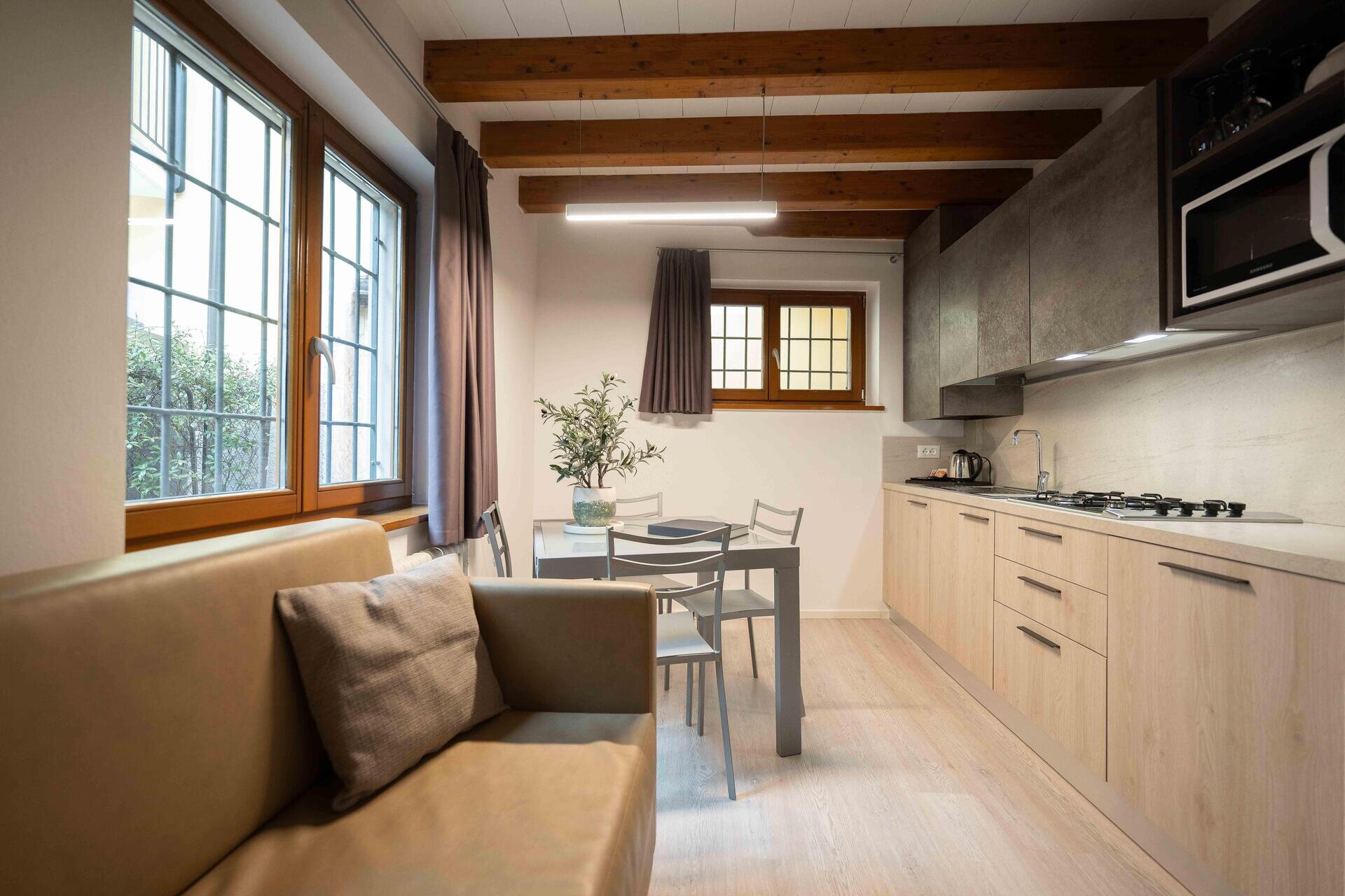 Im Herzen von Trient, nur wenige Schritte von den historischen Stadtmauern entfernt, befinden sich die Ferienwohnungen Domus al Concilio. Pflegeleicht, einladend und mit einem zeitgenössischen Stil, wurden sie zwischen 2023 und 2024 vollständig renoviert und befinden sich in einem einzigen Gebäude mit unabhängigem Zugang. Die Lage ist zentral, aber ruhig: Der Dom ist nur 100 Meter entfernt, was die Wohnungen zur idealen Basis macht, um die Stadt bequem zu Fuß zu erkunden.
