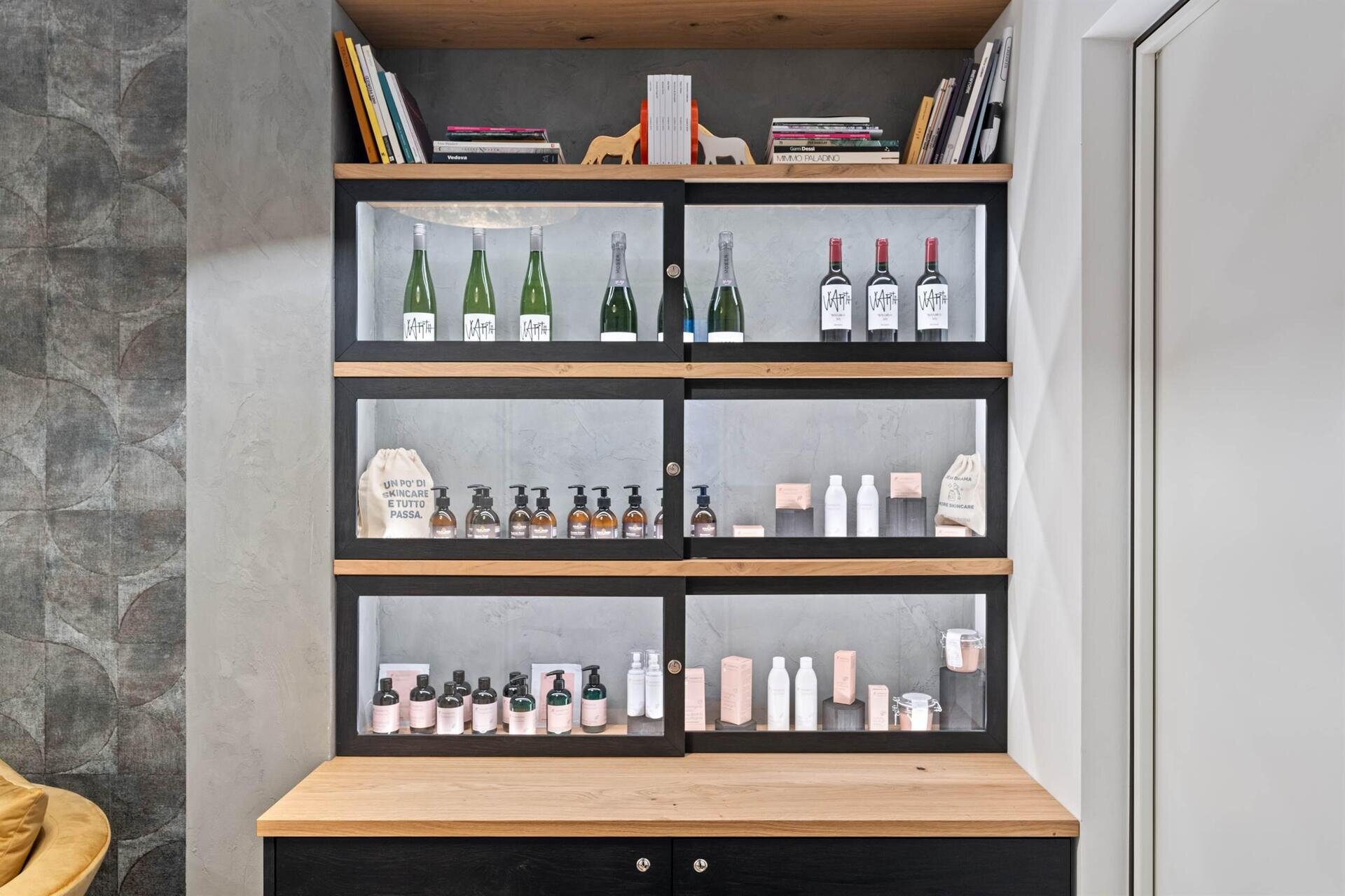 Jedes Detail ist darauf ausgelegt, ein einzigartiges sensorisches Erlebnis zu bieten: von der personalisierten Fourrings-Kosmetiklinie Areaderma über die Weine des Weinguts Moser, die verkostet werden können, bis hin zu den ausgestellten Kunstwerken. Ein Geschmackserlebnis, Wohlbefinden und Schönheit, das die Exzellenz und Identität von Trento erzählt.