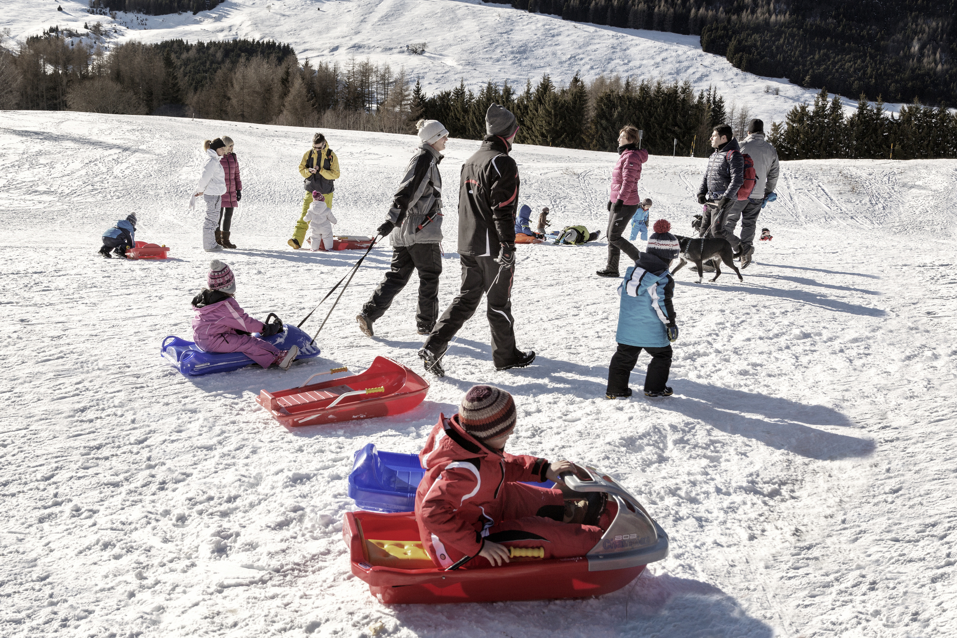 Hängende Häuser, tibetische Brücken, Seilüberquerungen, indisches Tipi und sogar der Bohrer für die Suche nach Wasser. Alle aus natürlichen Materialien wie Holz, Seil und Metall gefertigt. Imposante Strukturen, umgeben von Bäumen, umgeben von einer wunderschönen Landschaft, in einem sonnigen Becken, umgeben von den Gipfeln des Monte Bondone. Ein Kinderspielplatz für garantierten Spaß... und im Winter bieten ein paar kleine Hügel die idealen Hänge, um mit Rodeln und Bob zu spielen.