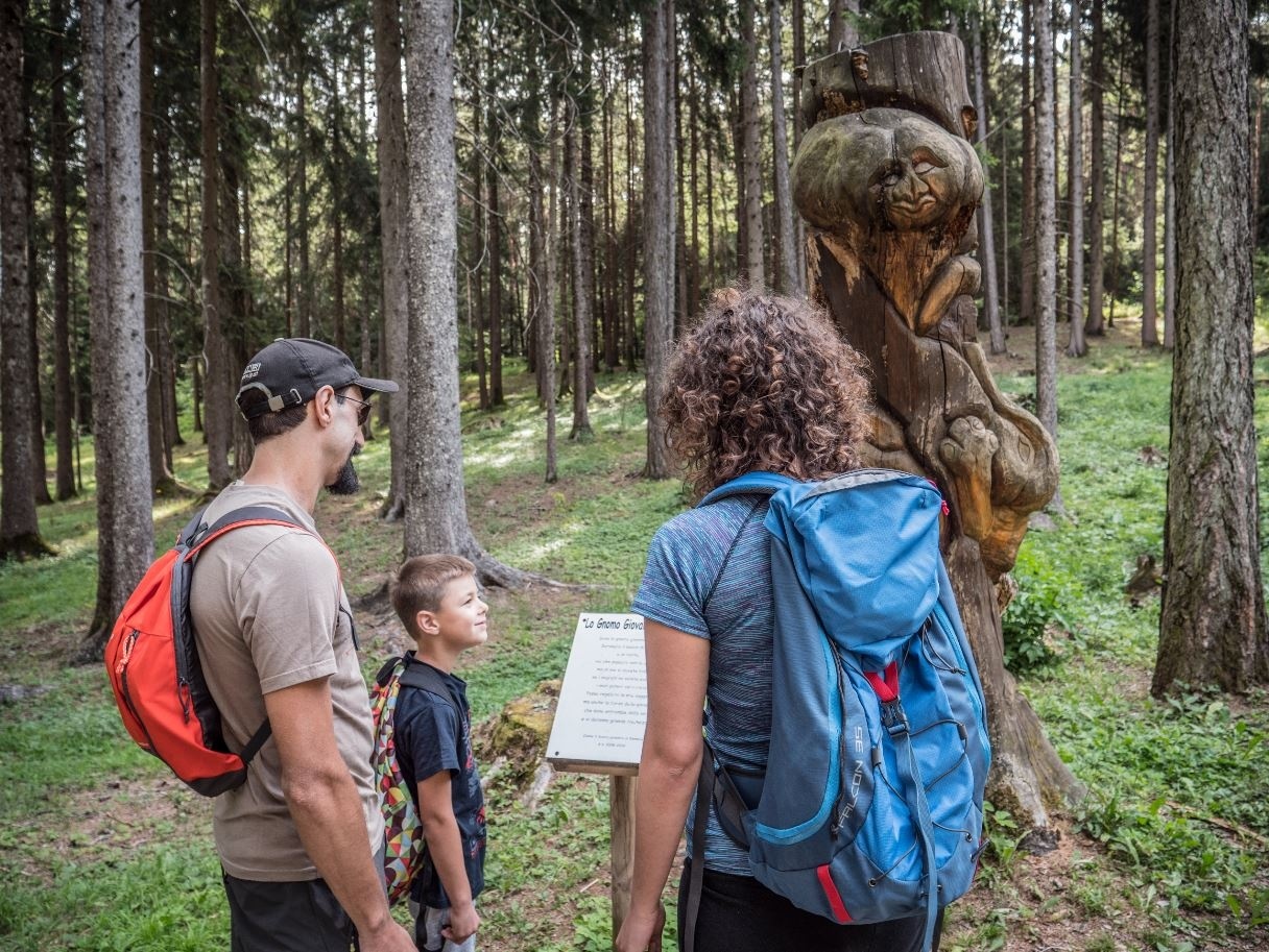 Der Weg wird durch die fantastische Anwesenheit von insgesamt 23 Holzskulpturen belebt, die Zwerge, Waldbewohner und Figuren lokaler Legenden darstellen. Die ersten Skulpturen wurden ab 1996 von den erfahrenen Händen von Nino Puleo, genannt Nino, geschaffen und später durch Werke anderer lokaler Bildhauer ergänzt, die im Rahmen des jährlichen Bildhauersymposiums entstanden sind.