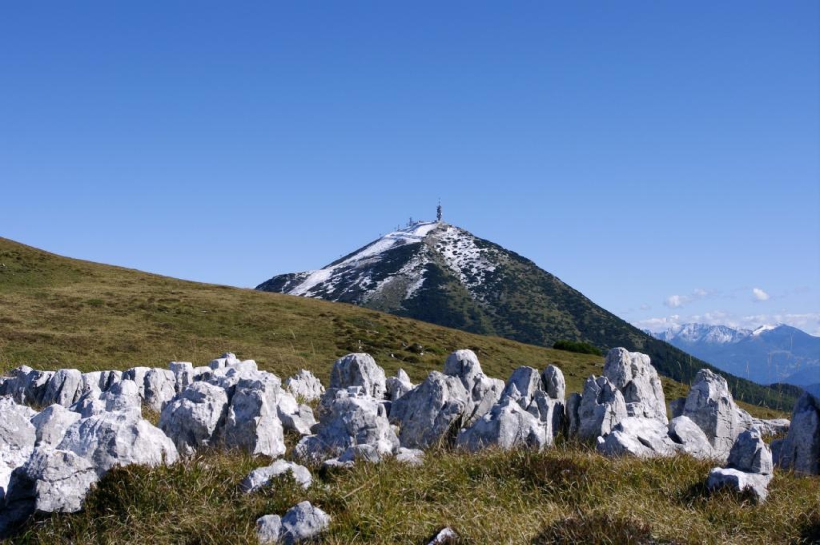 Mit einer kurzen Abzweigung nach rechts kann man zu den Roste del Bondone aufsteigen, dem grasbewachsenen Grat nördlich der Bocca di Vaiona, der etwas höher liegt. Von dort ist das Panorama noch weiter.