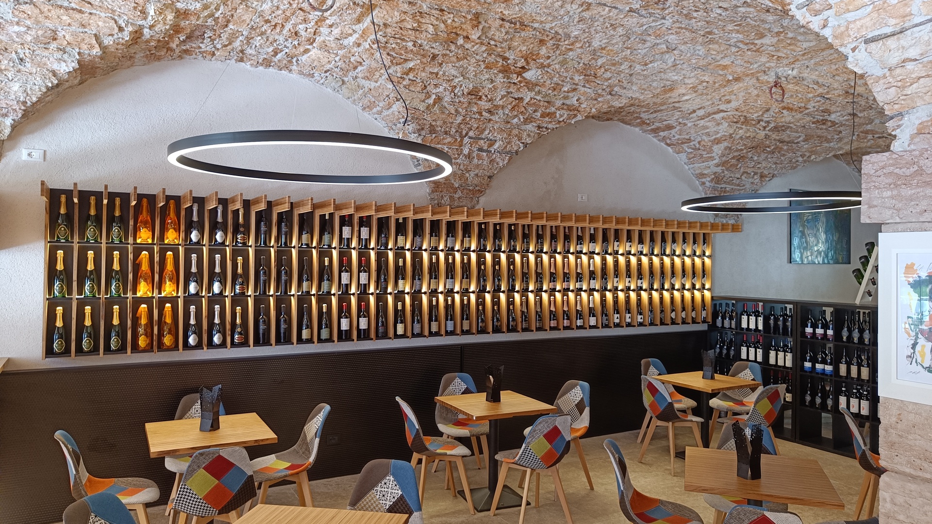 Qualitätsprodukte aus dem Trentino und eine erlesene Auswahl an lokalen Weinen, zu denen Etiketten aus anderen italienischen Regionen und einige Angebote aus dem Ausland hinzukommen.