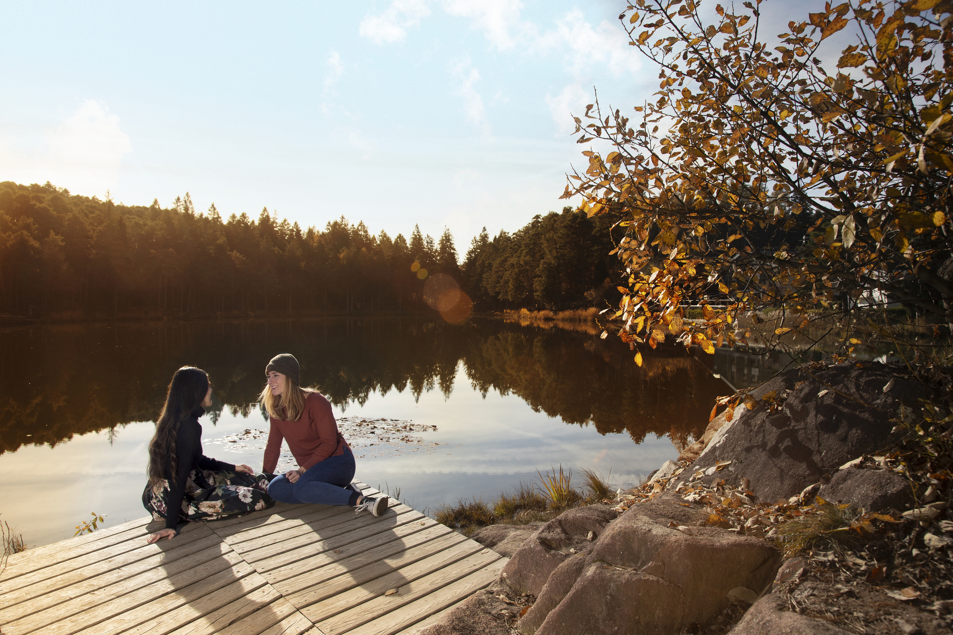 Der Blick auf den Teich, eingebettet in die Ruhe des Waldes.
