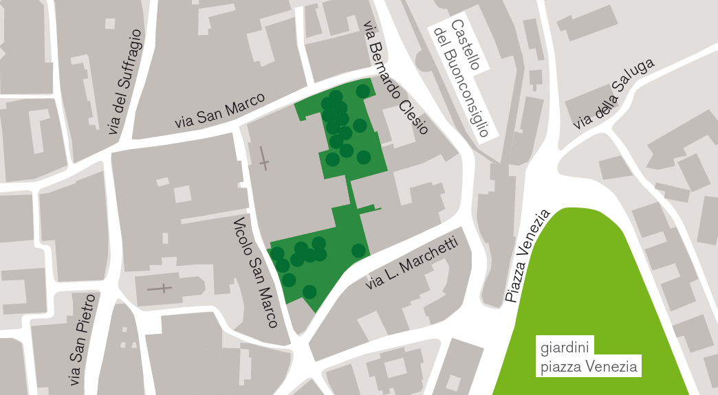 Tagsüber ist dieser Garten für die Öffentlichkeit zugänglich, da er die Überquerung von der Via Livio Marchetti zur Via San Marco ermöglicht.