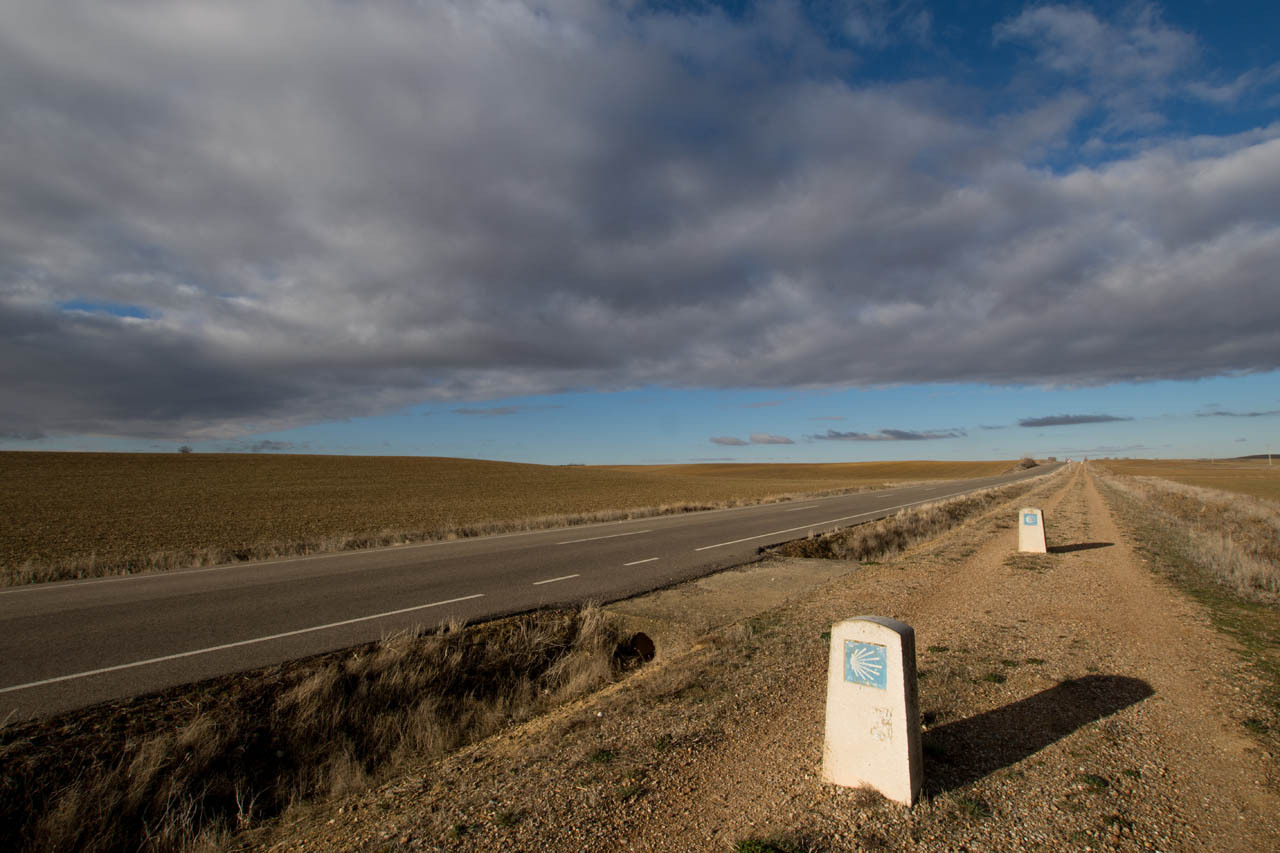 Die Fotoausstellung in 63 Tafeln mit Gegenständen und mehr begleitet den Besucher auf den Wegen nach Santiago de Compostela in Spanien und entlang der italienischen Via Francigena.