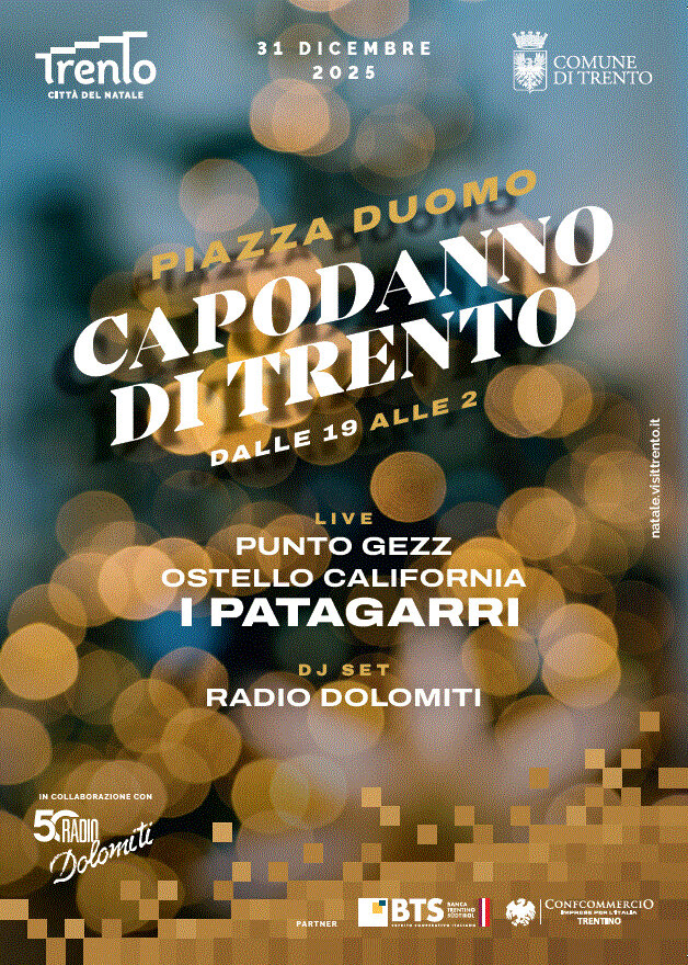 Das neue Jahr 2026 in Trient wird ein großes kollektives Fest sein, das alle Generationen im Namen der Musik, des Spaßes und des Wunsches, die Ankunft des neuen Jahres gemeinsam zu begrüßen, vereinen wird. Um sie auf der Piazza Duomo in einer Veranstaltung mit freiem Eintritt zu beleben, die in Zusammenarbeit mit Radio Dolomiti durchgeführt wird, wird es ein lebendiges und qualitativ hochwertiges Line-up geben, das bereits um 19 Uhr beginnt und die am meisten erwarteten Gäste in den Patagarri haben wird.