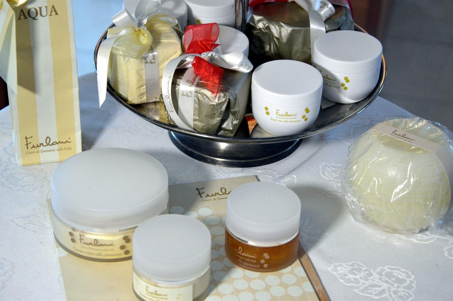 The Farm Guesthouse The Guesthouse is a new construction surrounded by a vineyard. On the east hill of Trento, a few minutes from the city center, from the Institute of Scientific and Technological Research " IRST ". CoSBi and the University of Trento . It offers a wonderful view to the mountains as " Group of the Brenta " and the " Three Peaks of Mount Bondone ." The Rooms Our farm guesthouse has 12 rooms warm and welcoming , elegantly furnished , High speed Internet and satellite TV , each of them with own bathroom. Each room has its own entrance directly from the large garden . The Kitchen The bright and airy dining room offers many products realized in the farm , for both breakfast and meal menus. The foods offered are prepared just before being served on the table . The Winery The winery Furlani is young and dynamic , a successful combination of tradition and avant-garde . The production is totally handmade and inside take place all the delicate stages of winemaking . Grapes are grown and vinified with passion , always with respect for nature and the environment from which the simple but refined wines are born with strong personality . The Cosmetics An exclusive line of cosmetics realized with our classic method sparkling wine . Sparkling wine as an expression of elegance and sophistication to be tasted , but also as a substance rich in natural active ingredients that can protect and feed our body and our skin.