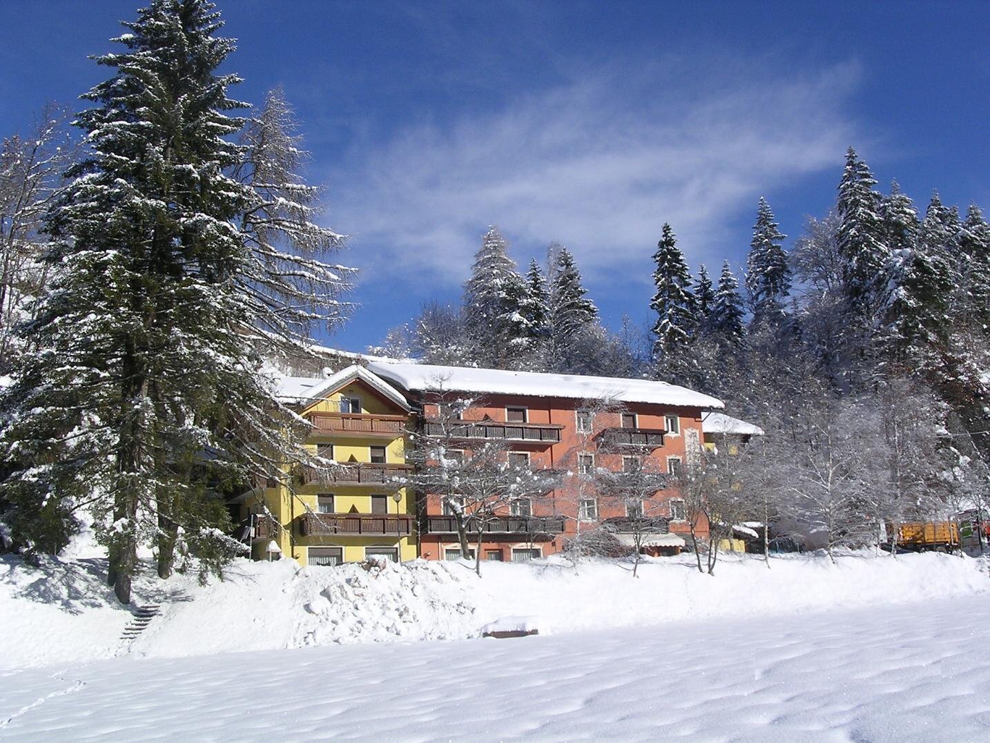 Albergo Miramonti, half an hour from Trento and twenty minutes from Pergine Valsugana, is located on the "Altopiano di Piné" - Pinè Plateau at an altitude of 1,000 metres and is just a few metres from the shores of Lago delle Piazze. A perfect place for mountain excursions and peaceful walks on the shores of the Plateau's two lakes, it is located right opposite the bus stop.