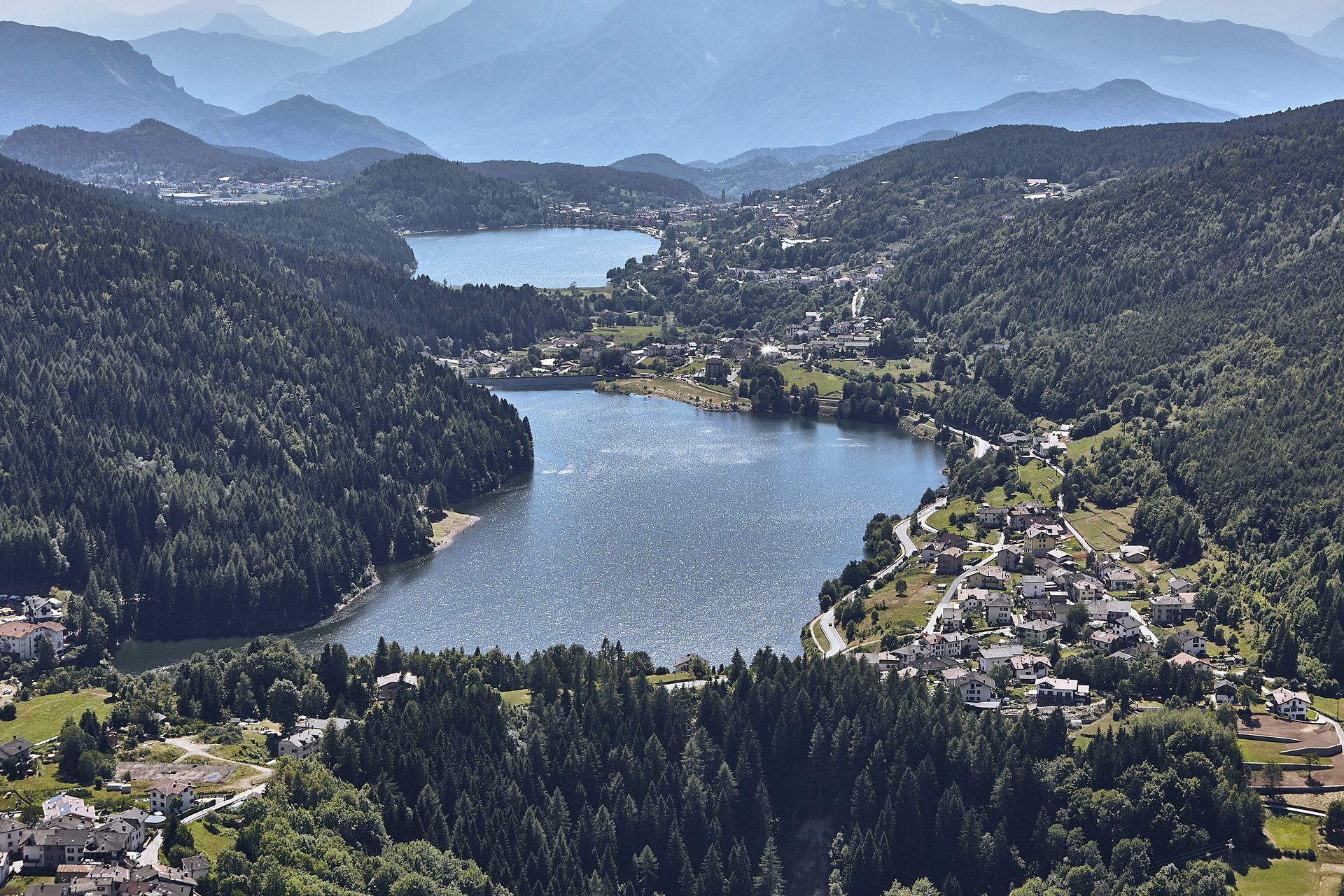 Lake Piazze, the twin of the nearby Lake Serraia, is particularly popular with those who enjoy water sports and sunbathing on the meadows.