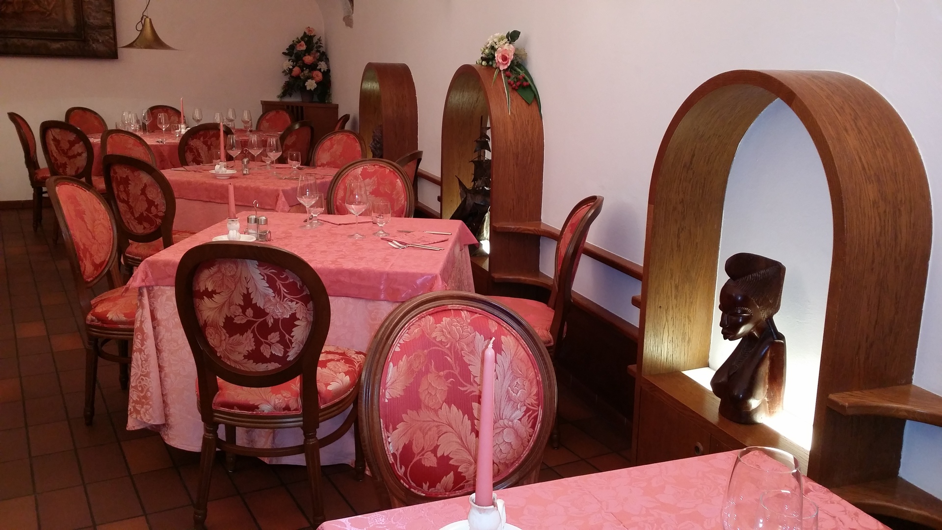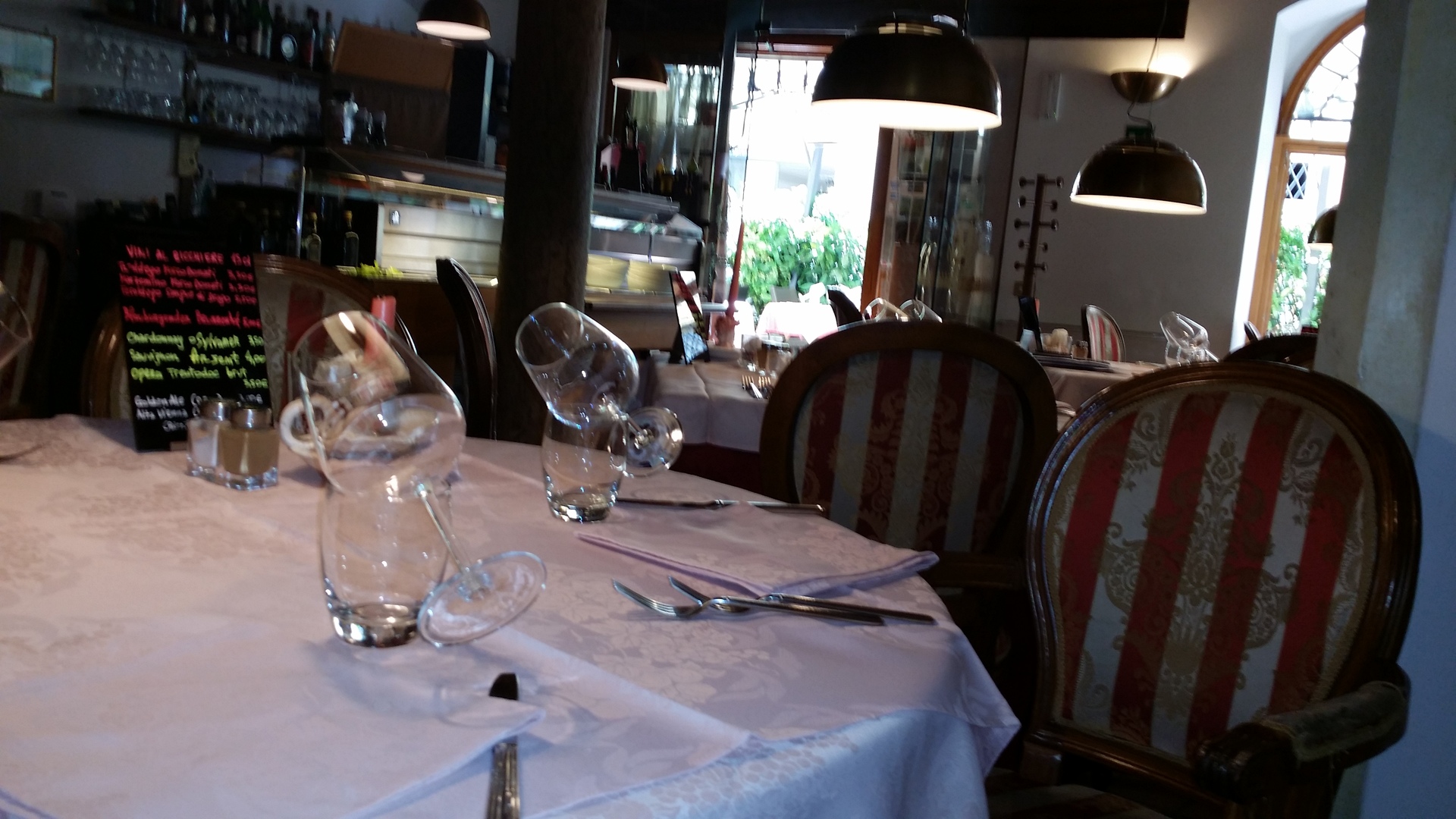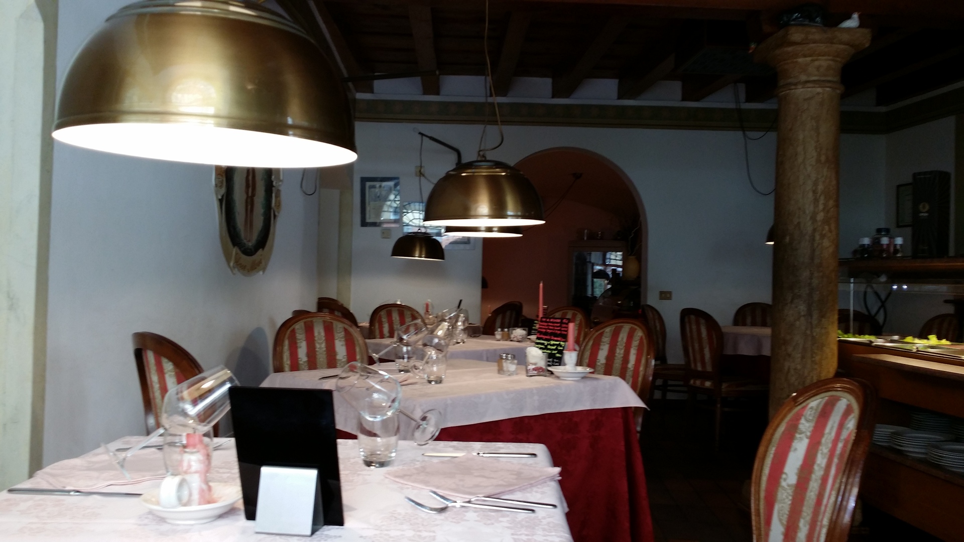 L’atmosfera è romantica e raffinata: tre salette quattrocentesche impreziosite da soffitti a volta, travi antiche e lampade che illuminano con luce calda. D'estate si aggiunge un attrezzato dehors esterno, perfetto per cene all’aperto in un contesto storico suggestivo