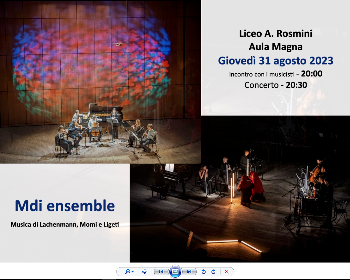 Nella serata di giovedì 31 agosto 2023 presso l'aula magna del Liceo Antonio Rosmini di Trento in via Malfatti, si terrà una serata dedicata alla musica, il "Festival Contrasti".