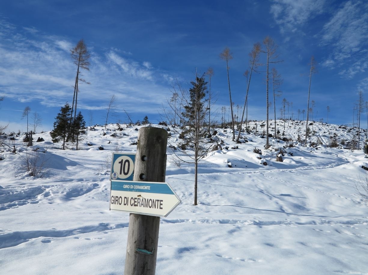 Interessante itinerario che percorre i boschi del monte Ceramont; la vista superba spazia dal gruppo di Brenta al Lagorai e dall’ Altopiano di Piné alla valle di Cembra.