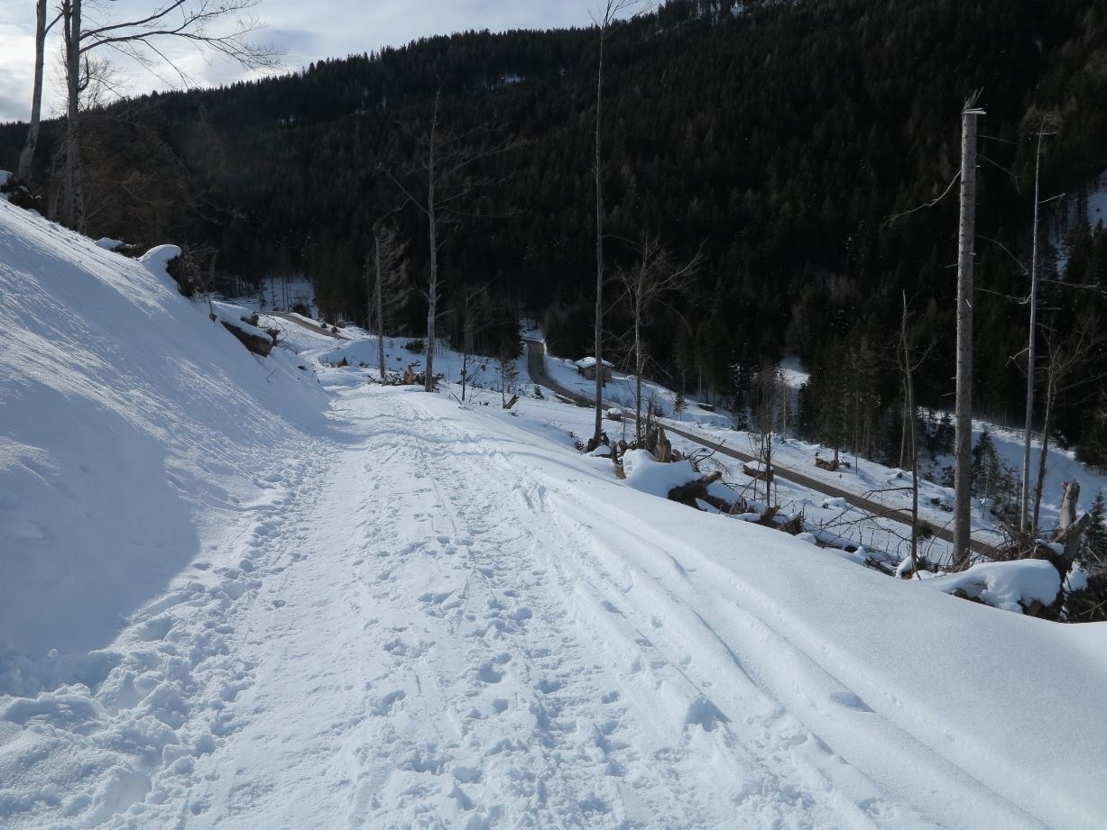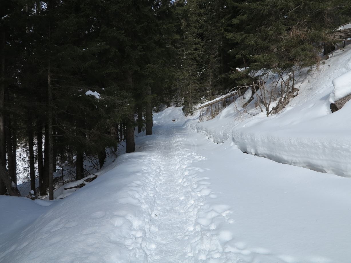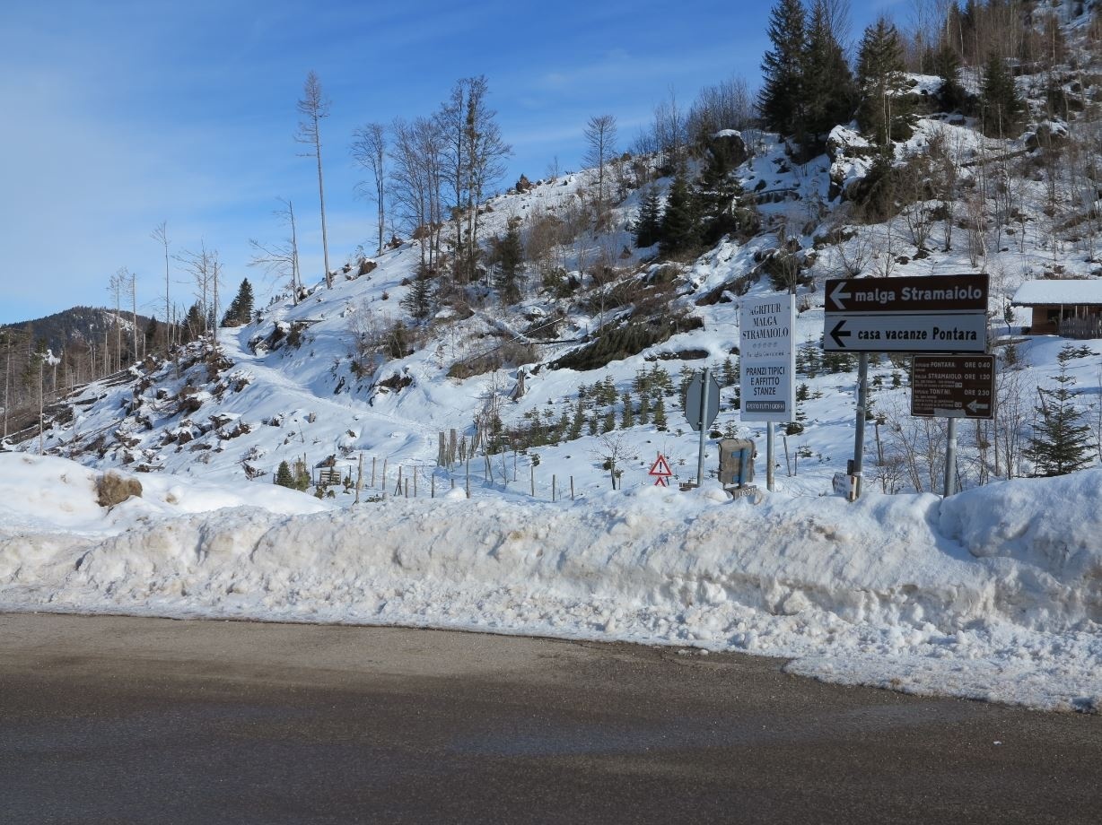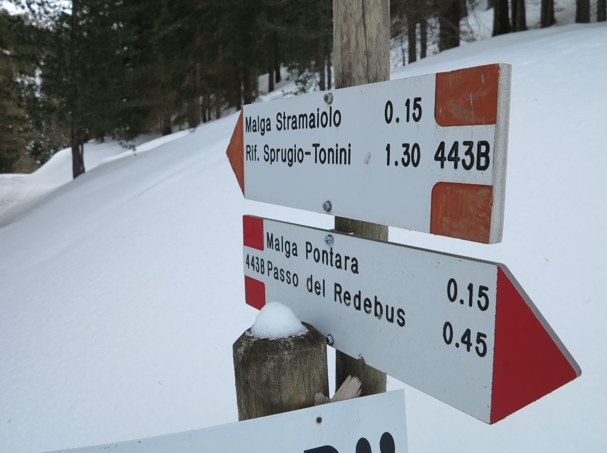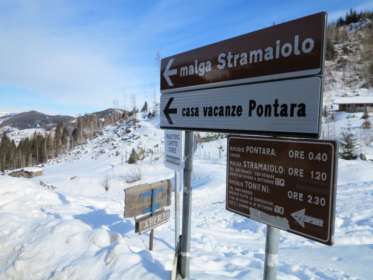 Praticabile con ciaspole o ramponcini. Nei pressi della malga Stramaiolo si aprono ampi prati adatti a “slittare” per cui è obbligatorio portare con sé bob o slitta.