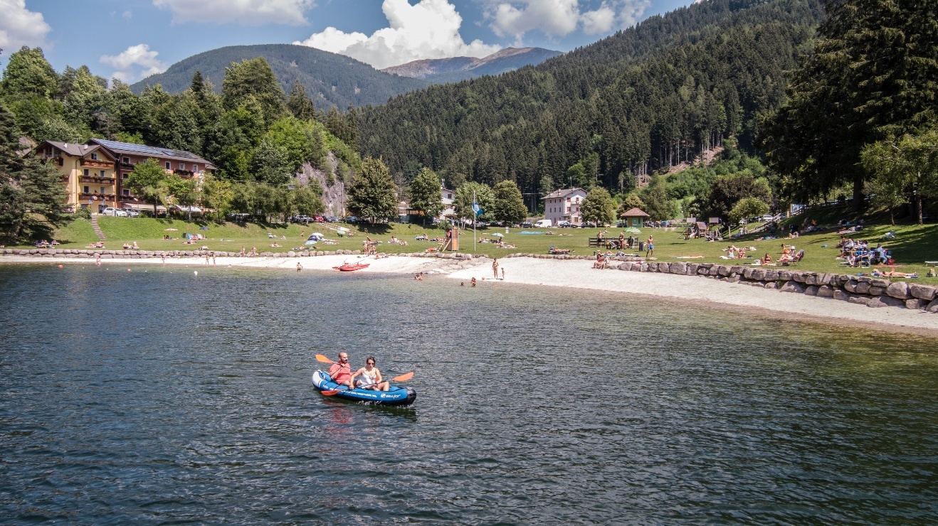 Tratto del sentiero europeo E5 che taglia l'Altopiano di Piné, un territorio amato per la presenza dei numerosi laghi alpini, dei piccoli borghi, dei boschi rigogliosi e dei pascoli dove si alimentano gli animali dell'alpeggio e grazie a cui si producono i profumati e saporiti formaggi locali.