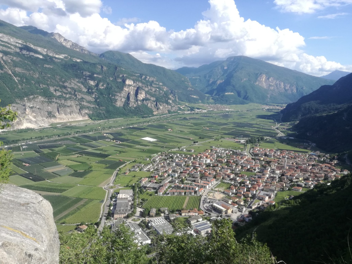 Poco più a sud del capoluogo trentino, sulla sponda destra del fiume Adige, il paese di Aldeno è adagiato in un paesaggio agreste di vitigni e frutteti alle pendici orientali del Monte Bondone ed è riconoscibile per l’alto campanile della Chiesa di San Modesto. Nel nucleo storico del paese è ancora visibile la torre civica, unico elemento ancora presente dell'antica chiesa di San Zeno (XVI-XVII secolo) demolita nel settecento.