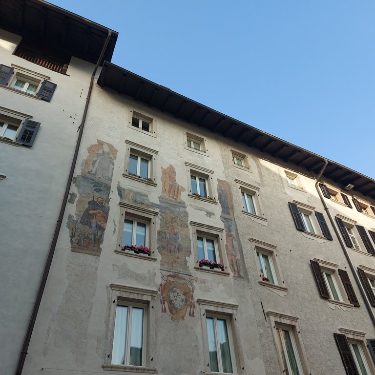 Una splendida sorpresa nel centro di Trento! Emersi inaspettatamente nel corso dei lavori di restauro realizzati sulla facciata di Palazzo Niccolini, gli affreschi risalenti alla fine del XVI secolo si presentano oggi in tutta la loro bellezza. Sostando davanti all’edificio puoi ammirare un'eccezionale serie di dipinti che raffigurano la Traslazione della Santa Casa di Nazareth dove visse Gesù, giunta in volo nella chiesa di Santa Maria di Loreto. Ai lati si osservano le figure di san Sebastiano e san Rocco, e un Cristo che versa il sangue dal costato nel calice. Significativa la presenza dello stemma madruzziano che richiama alla nobile famiglia trentina. L’attribuzione degli affreschi non è certa anche se pare risalire a più artisti della scuola veneta.