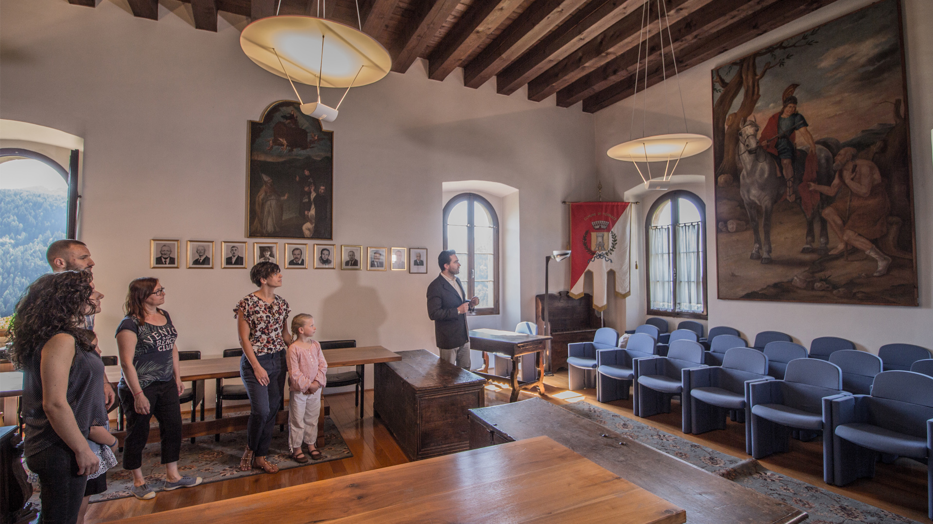 Conosciuto anche come Castel Fornace, questo palazzo rinascimentale situato nel centro del paese ospita il municipio dell’omonimo comune trentino. Eretto in epoca medievale (alcuni documenti redatti alla fine del XII secolo lo citano come “torre di Fornace”), nel 1424 il castello viene attribuito dal principe vescovo di Trento a Cristoforo e Antonio di Roccabruna, esponenti di una nobile famiglia locale. Sarà il loro discendente Giacomo nel 1468 ad avviarne una prima ristrutturazione cui seguirà una seconda serie di interventi circa un secolo più tardi.