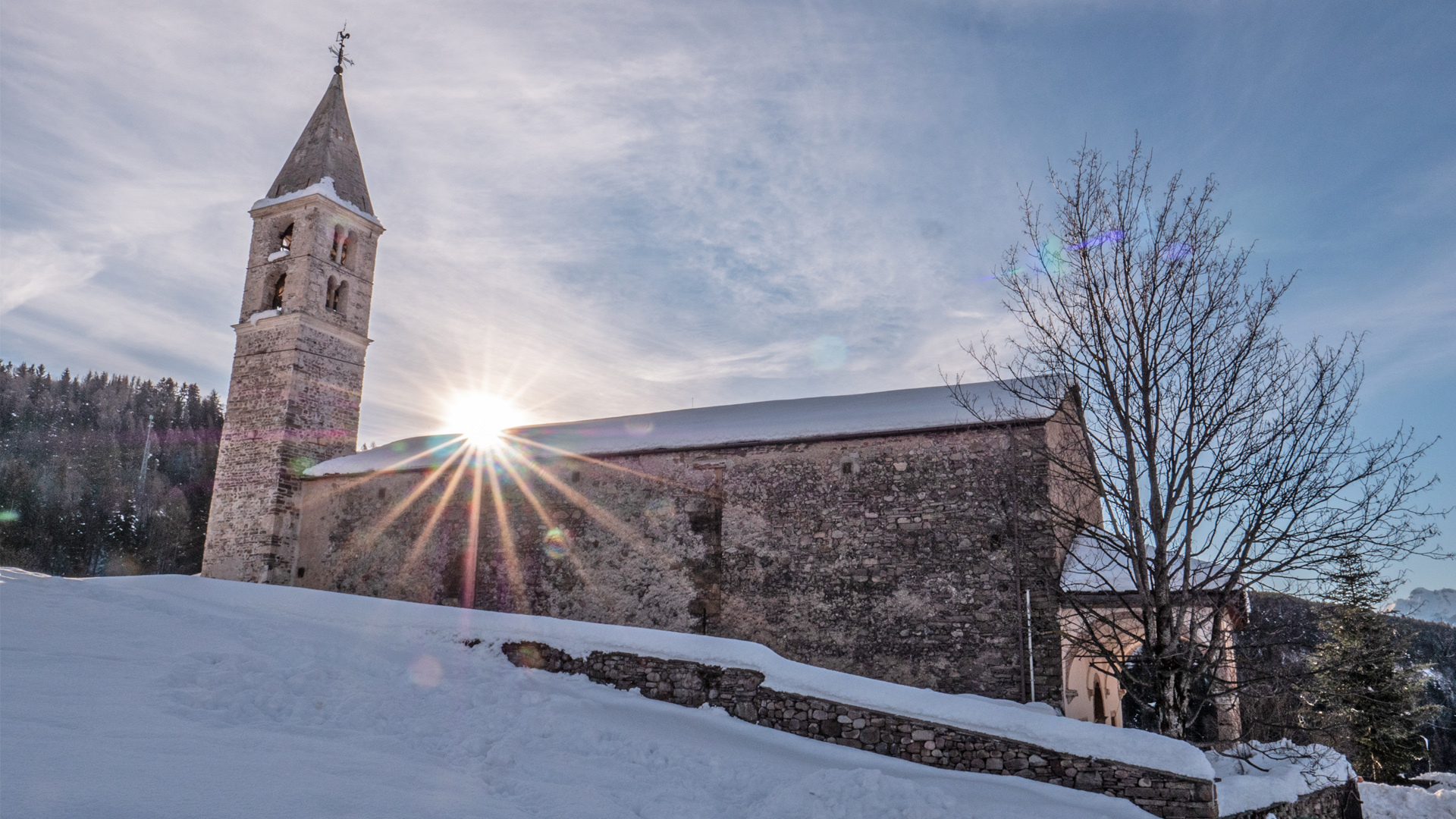 Citata già in un documento del 1242, fu sicuramente la prima Pieve pinetana, presso cui venivano celebrate le funzioni liturgiche più importanti per la comunità. Oggi si presenta in stile gotico-rinascimentale con una facciata semplice un elegante ingresso a tre campate ornato da quattro colonne di pietra rossa e il campanile romanico, unica testimonianza della prima chiesa.