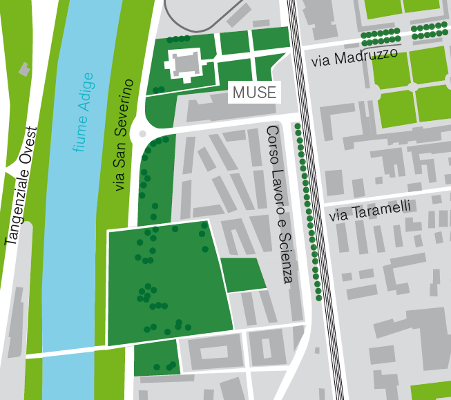 L’area prende il nome dal vicino elegante Palazzo delle Albere, una villa vescovile realizzata in occasione del Concilio di Trento nel XVI secolo, così chiamata in riferimento ai Populus alba, pioppi bianchi, che accompagnavano l’asse stradale di collegamento tra il palazzo e la città.