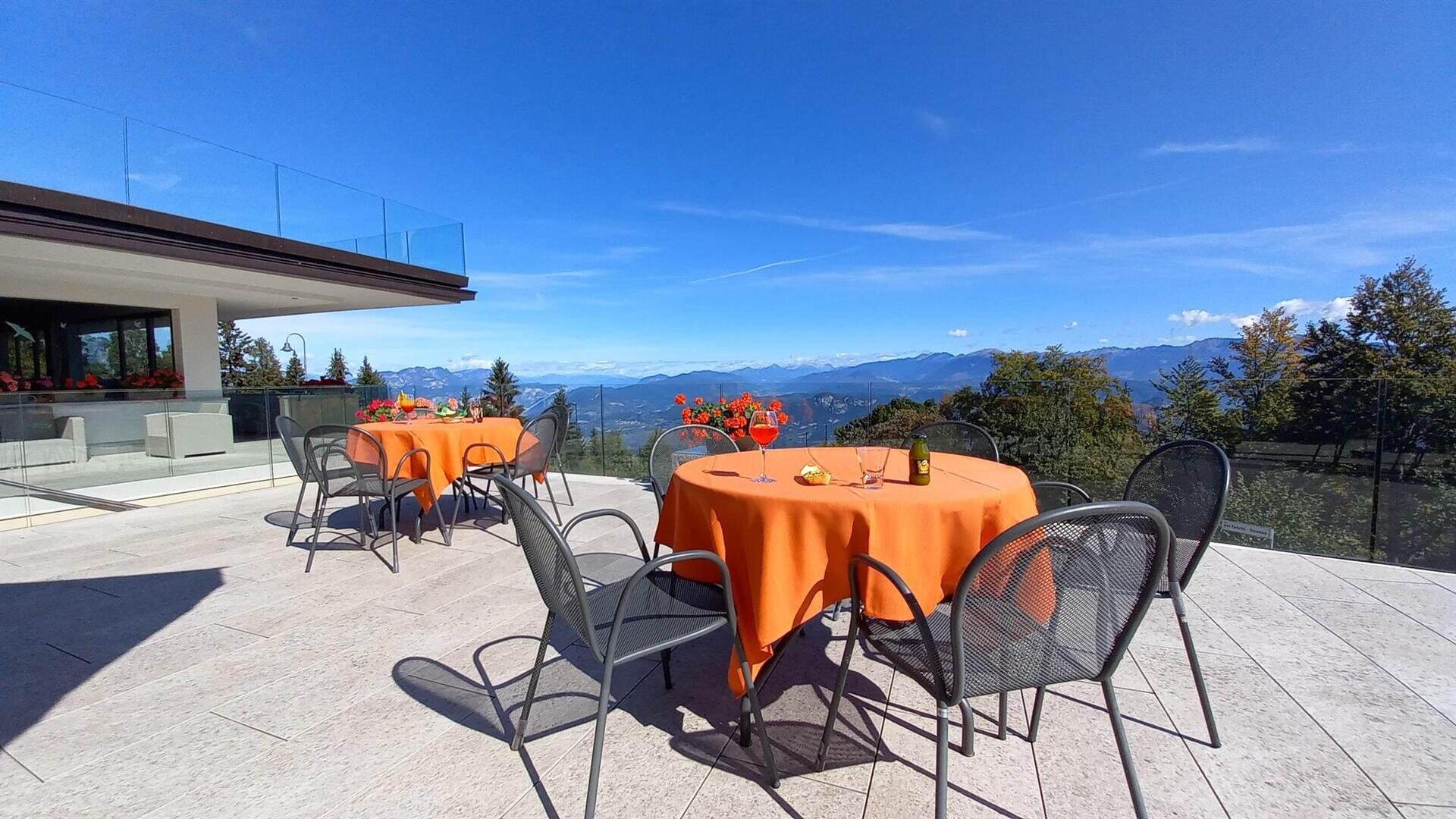 Gli spazi esterni infine si prestano, in aggiunta alle sale interne, per essere utilizzati in occasione di aperitivi, pranzi, ricevimenti o cerimonie all'aperto godendo della vista panoramica sulla valle e sulla città di Trento.