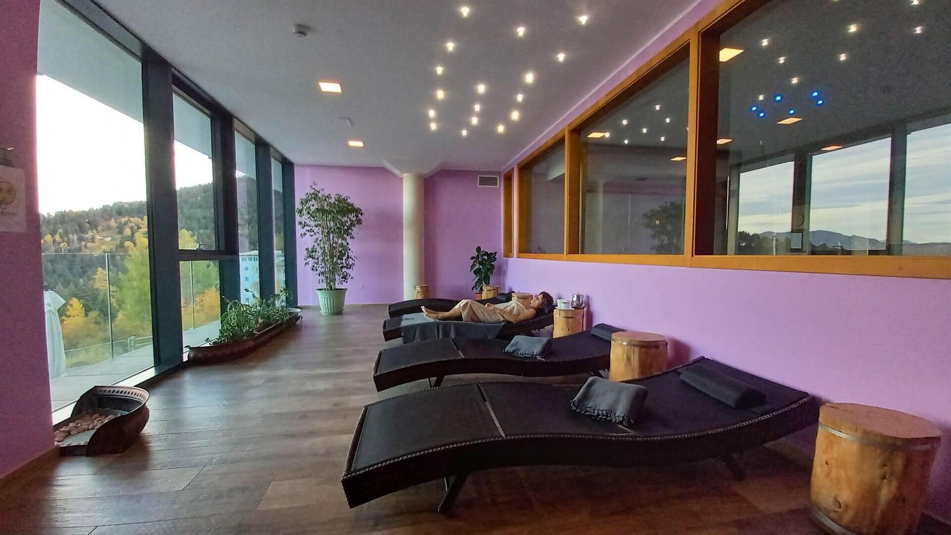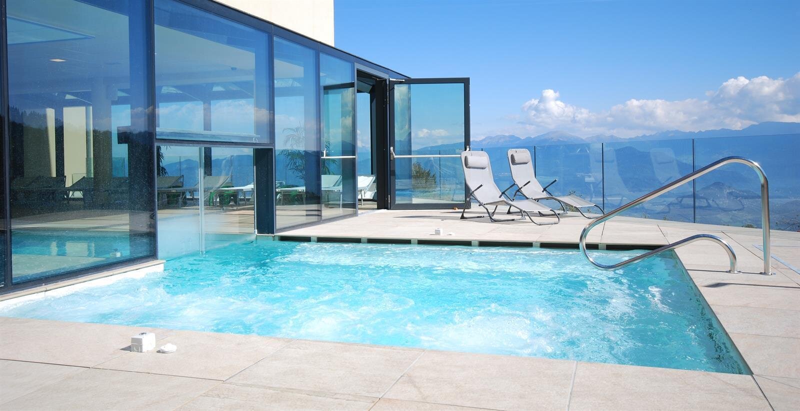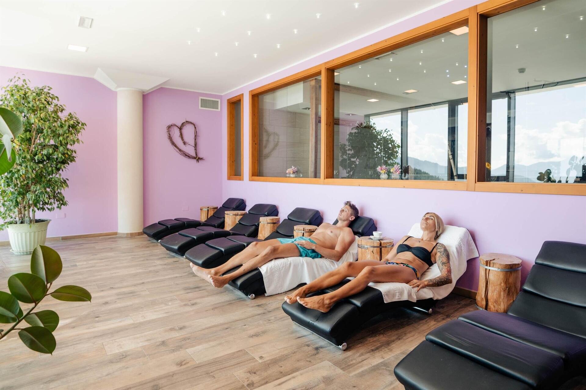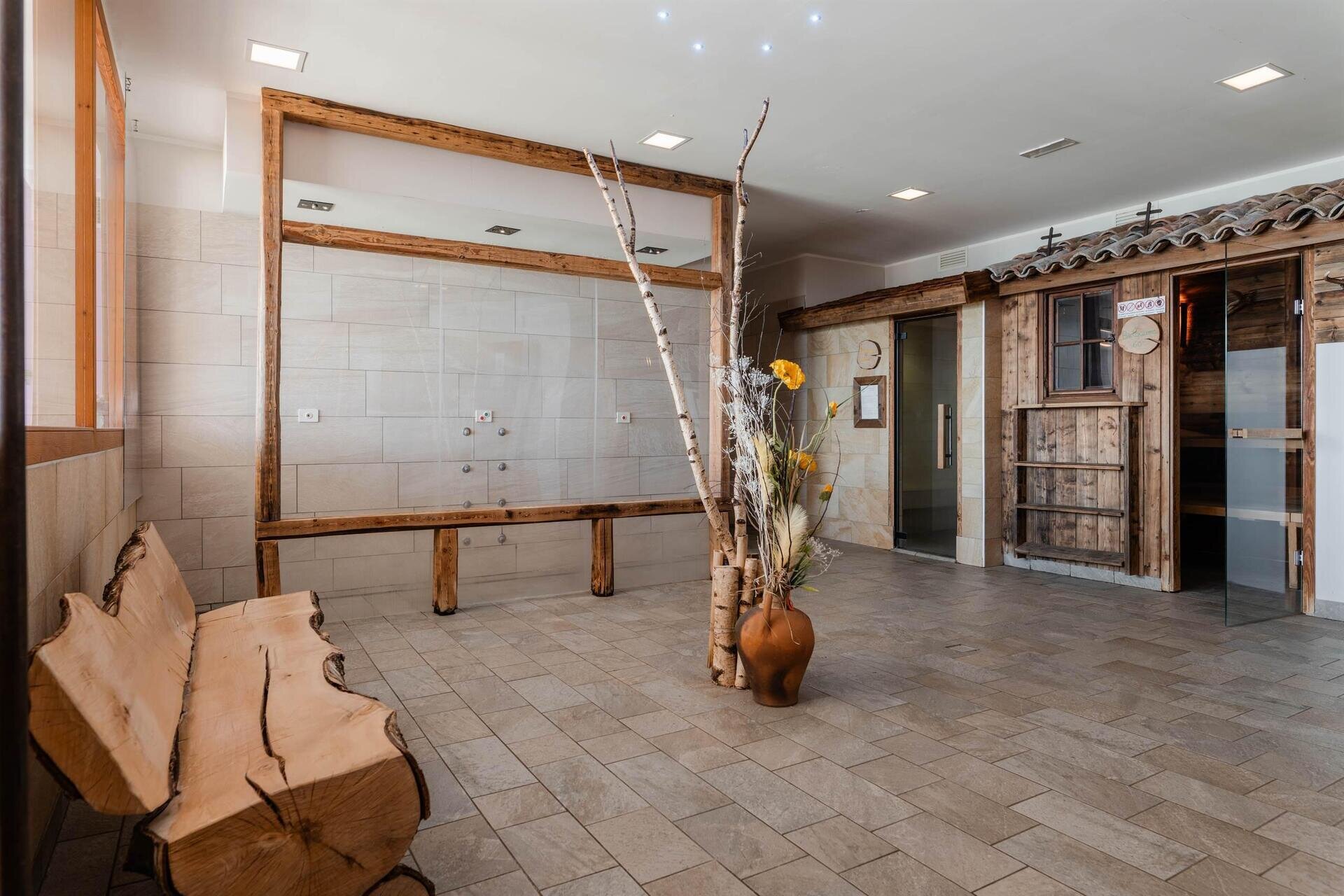 - centro benessere di oltre 500 mq, piscina riscaldata interna ed esterna con idromassaggio, sauna finlandese, biosauna, bagno turco, docce emozionali, cascata di ghiaccio, cabine per trattamenti e massaggi sportivi o rilassanti, area relax privata dotata di sauna a infrarossi, area relax con vista.