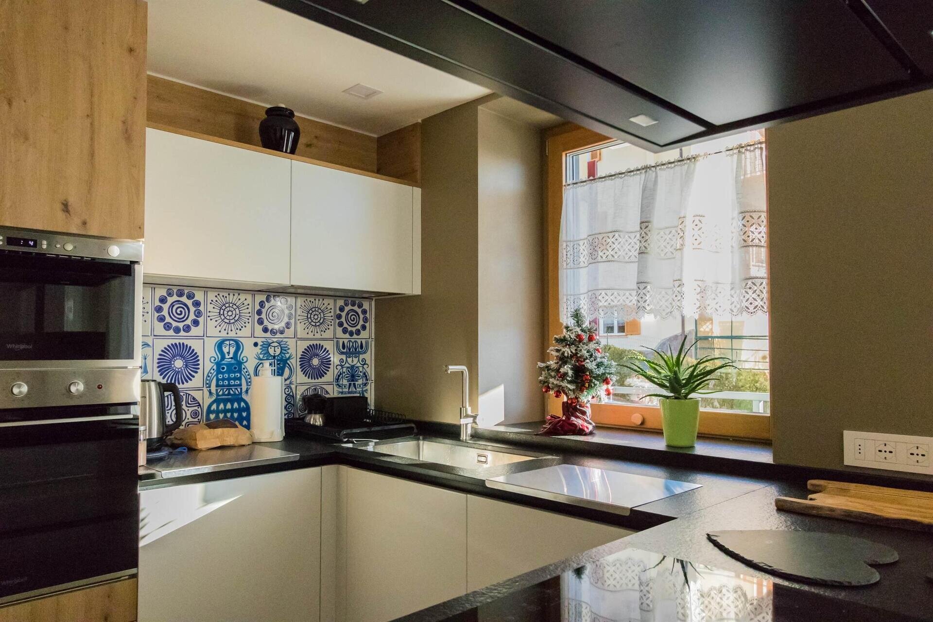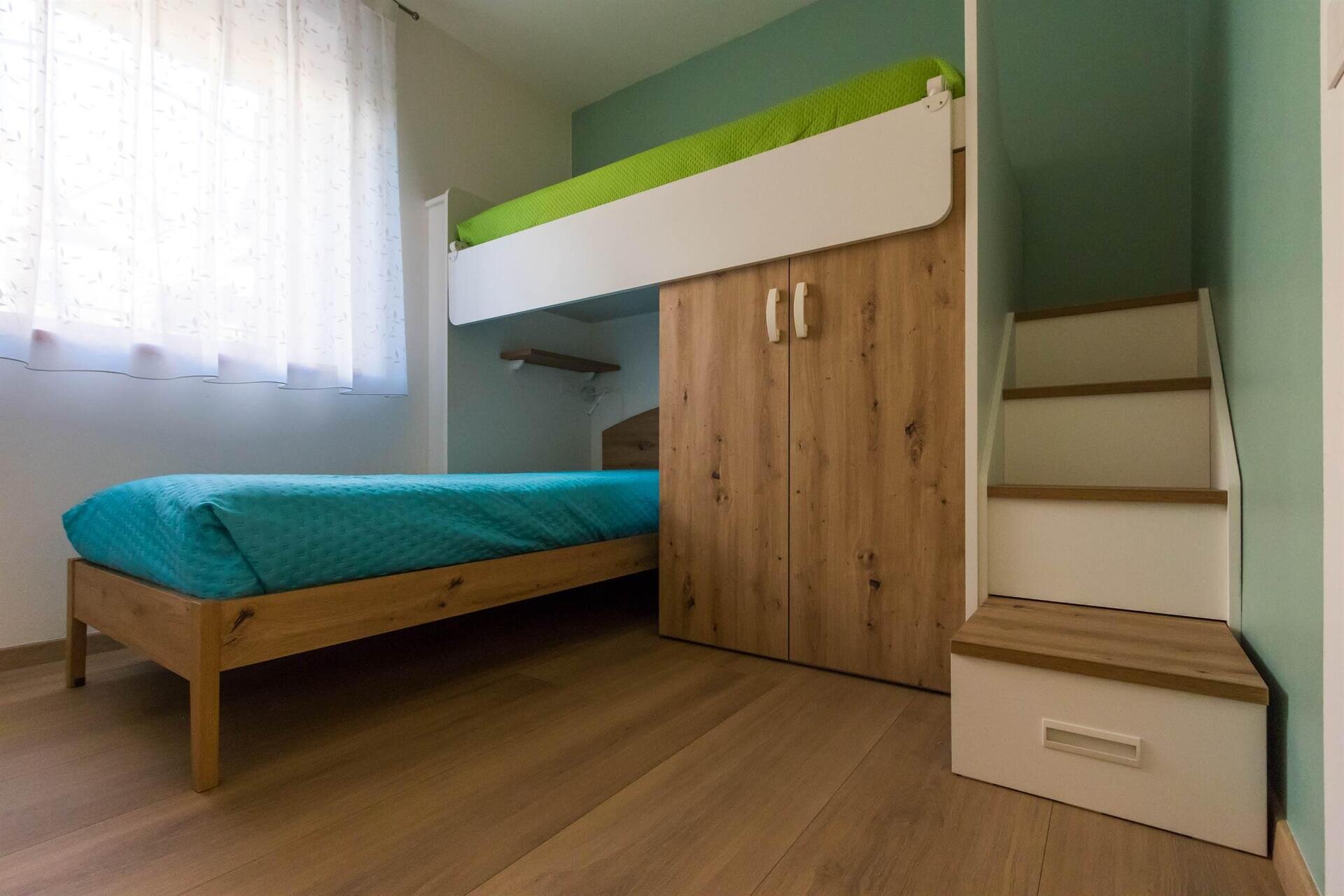 L’appartamento è costituito da un open space con cucina ben attrezzata (frigorifero, piano ad induzione,forno, forno microonde, bollitore, macchina del caffè, tostapane) e dal salotto composto da divano, tv satellitare e wifi. La zona notte è composta da camera con letto matrimoniale e camera con 1 letto a castello, sistemazione ottimale per 4 persone. Bagno con comoda doccia, lavatrice e asciugacapelli.